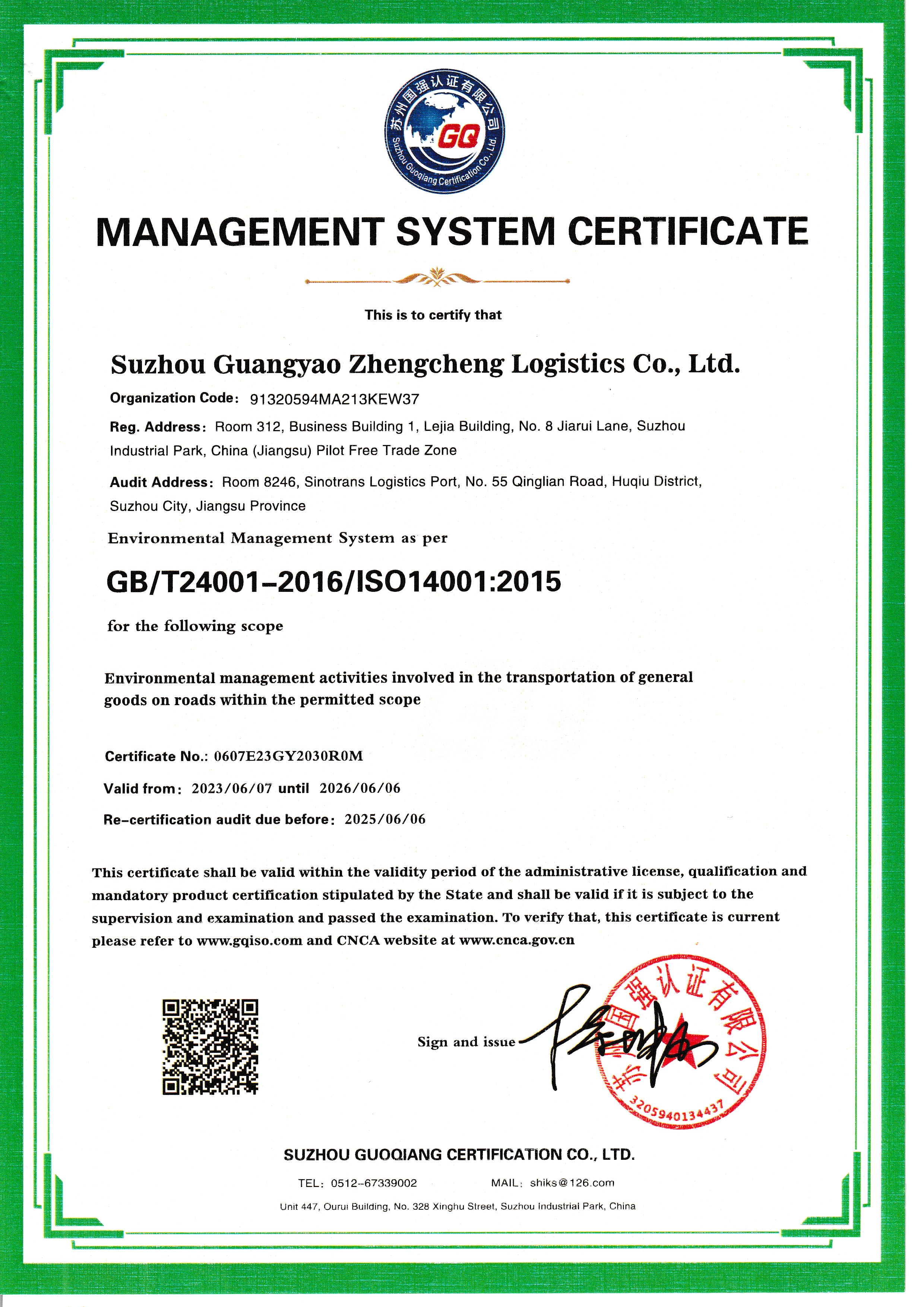这两项认证的获得将有力地提升公司的管理水平和服务质量,有助于公司建立起更加可靠和环保的物流体系,提升客户满意度和忠诚度,为公司的可持续发展奠定了坚实基础。公司将继续努力改进管理,以更加饱满的热情和务实的作风,为客户提供更加优质的物流服务